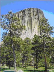 The Kiowa legend goes like this: seven sisters and their lone brother were picking berries. Suddenly the boy dropped to all fours and turned into a bear. The terrified girls climbed onto the stump of a great tree. The stump began to grow. The bear stood upon his haunches and began to score the bark with his claws. These are the vertical lines you see on Devils Tower. The seven sisters were borne into the sky and became the stars in the Big Dipper.